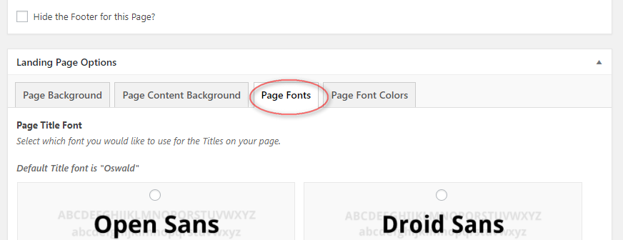 So, if you want to change the font on the landing page is, just go to Edit Page, select Landing Page Options, go to the Page Fonts tab.
