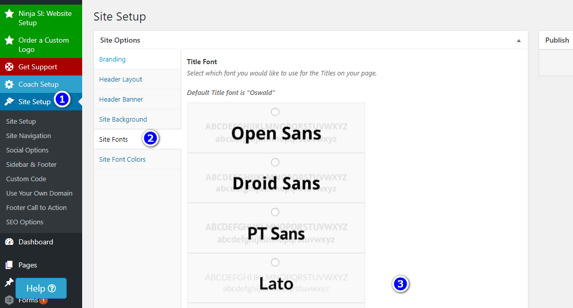 The first step, you must know the font type name you are using, just go to Site Setup in the Dashboard, and select Site Fonts