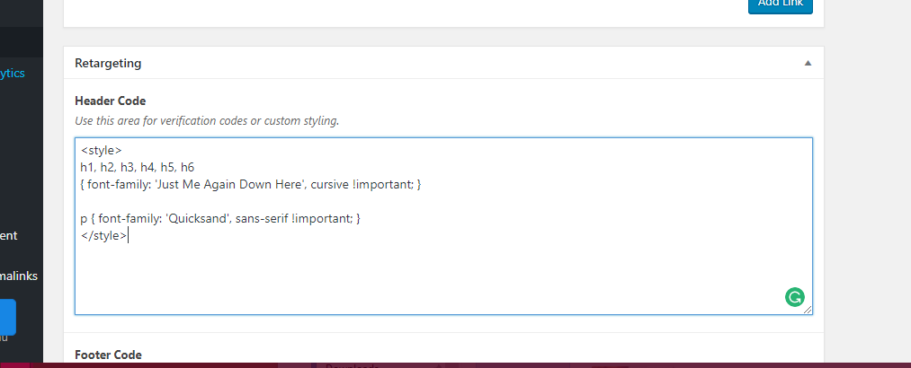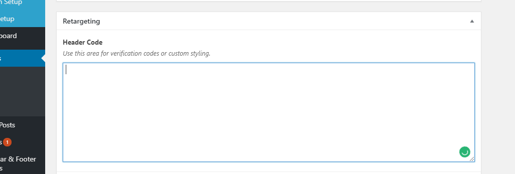Find the Header Code in the bottom of the page