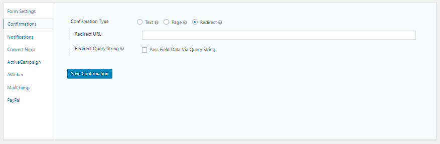 In the Confirmation menu, select the Redirect radio button, then paste your blog post link in the Redirect URL field. After that, click the Save Confirmation button to save changes.