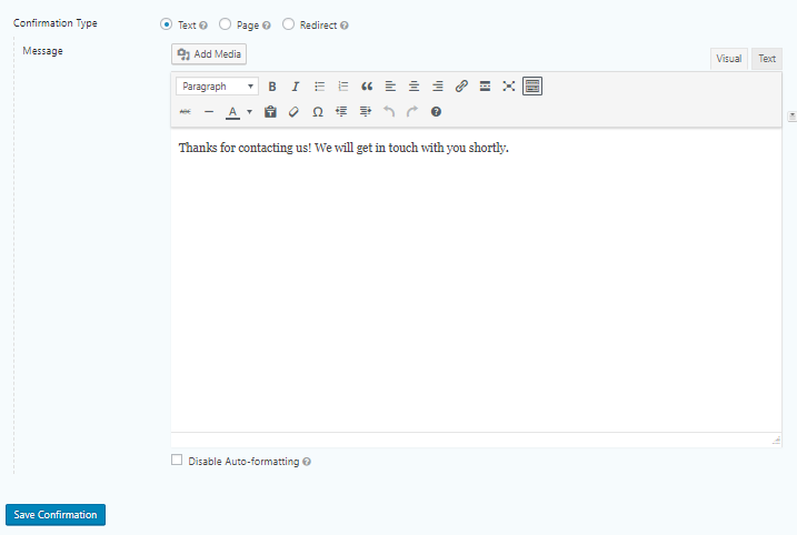 After you create your form in this article, you need to set the confirmation form, so the user will be notified after they submit the form.